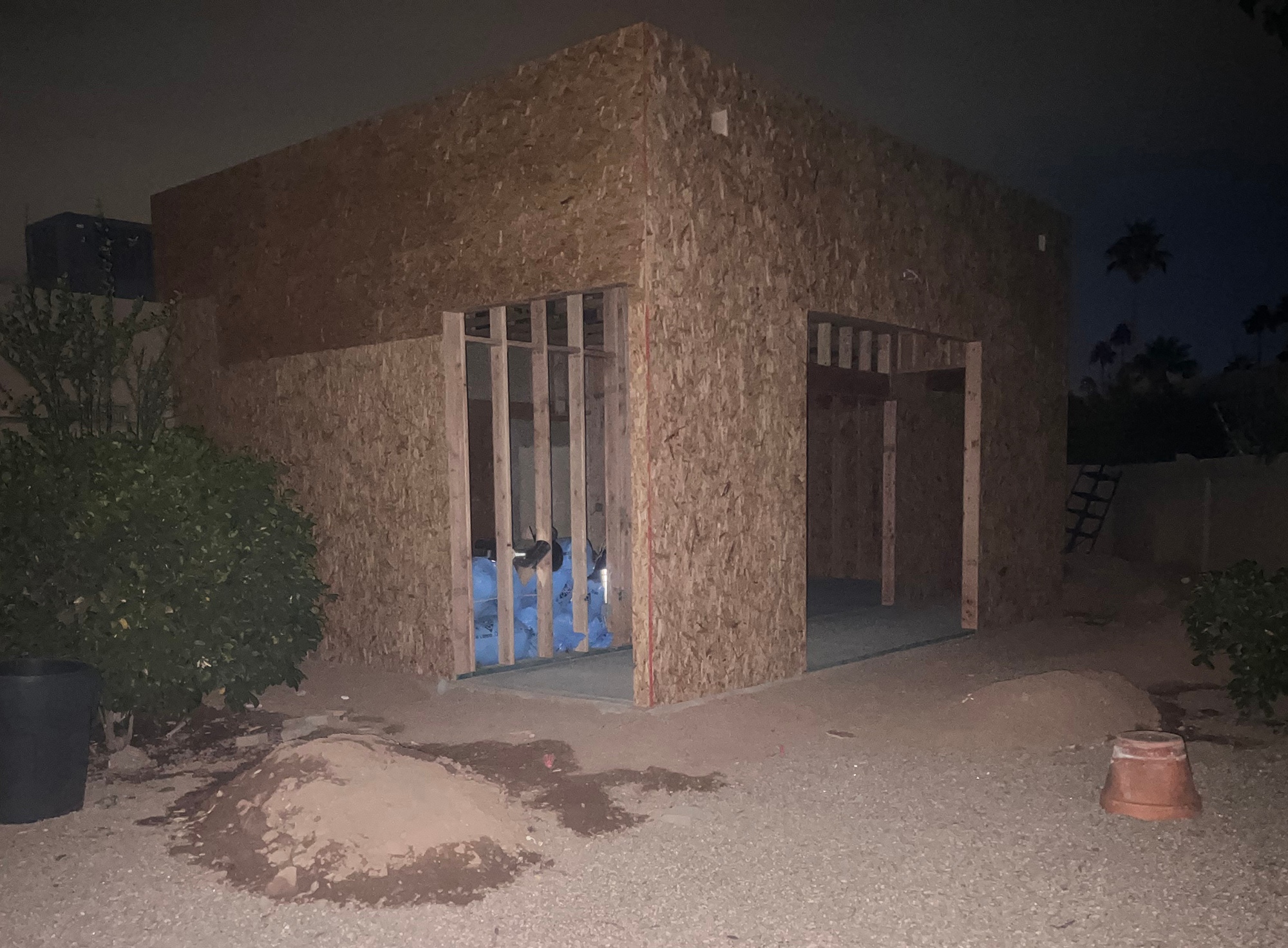 We “lined up” these adobe buildings by adding additions on either side, then cut a giant hole through all of them.